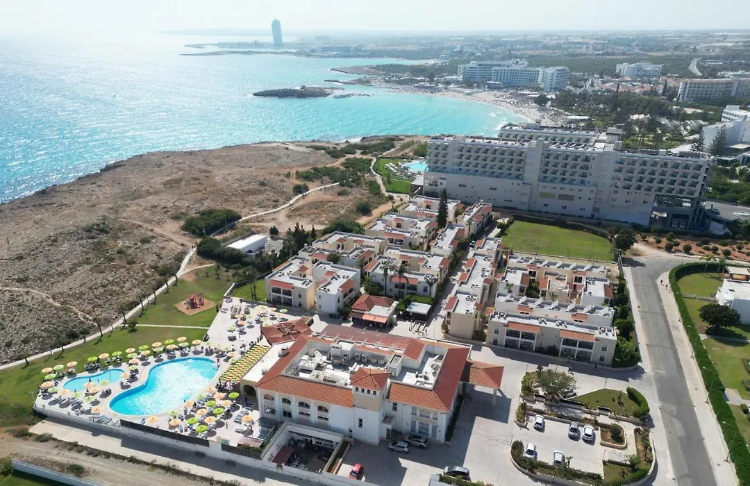 Aktea Beach Village offers leisure facilities like an outdoor swimming pool, a kids' club for children, and a health club featuring a Turkish bath and spa tub. The property is connected to Nissi Beach and Cape Greco via nature trails, appealing to outdoor enthusiasts.