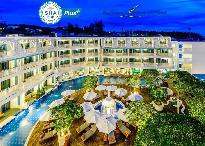 Andaman Seaview, Karon Beach - Sha Plus is a 4-star spa hotel situated just a minute's walk from Karon Beach, featuring Sino-Portuguese architecture and a tranquil environment. This hotel offers a buffet breakfast, two outdoor swimming pools, and a fitness center, making it suitable for both families and couples.