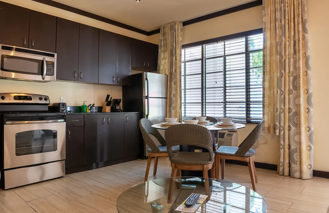 Tradewinds Apartment Hotel Miami Beach features luxurious one and two-bedroom apartment suites with fully equipped kitchens, spacious living and dining areas, and a private bedroom. Highlights include complimentary WiFi, a 42-inch plasma TV, and high-quality bath products. The suites can accommodate up to three guests, with some options providing twin-size pullout beds.