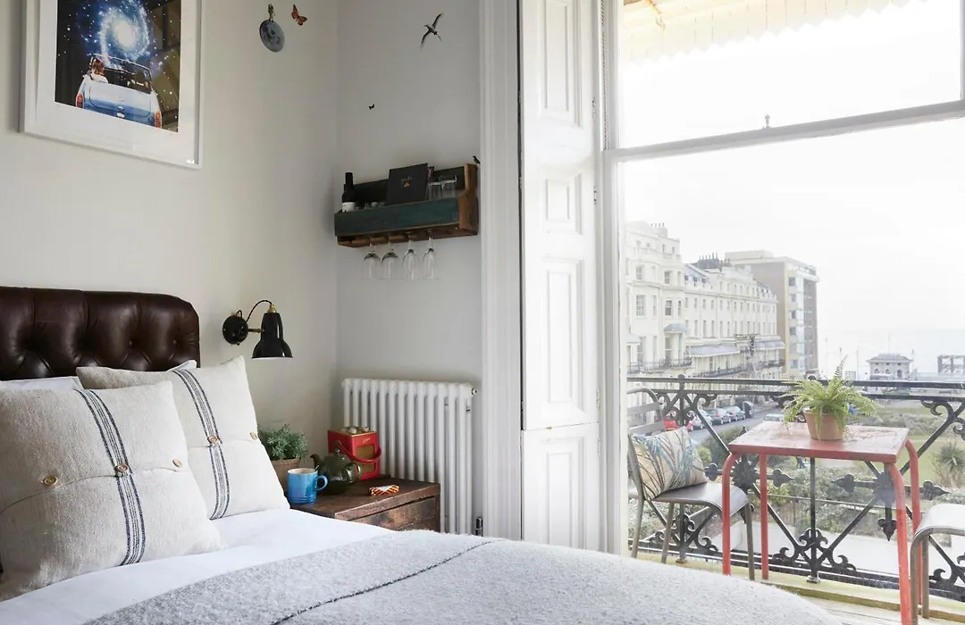 Rooms at Artist Residence Brighton are characterized by high ceilings, bespoke furniture, and original artwork. Options include sea-view rooms with balconies, super-king size beds, and roll-top baths in select accommodations.