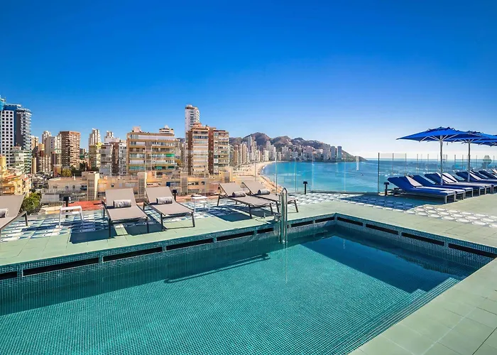 Barcelo Benidorm Beach - Adults Recommended (4-star, 9.0/10 on Booking.com) features a rooftop swimming pool and is located near one of the finest golden sand beaches. This adults-only hotel offers a buffet restaurant specializing in Mediterranean cuisine and a full fitness center.