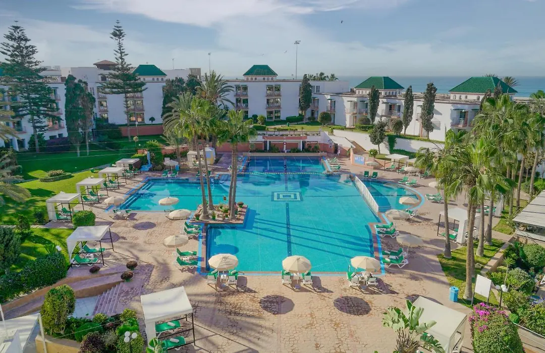 Agadir Beach Club, a 4-star hotel with a 7.1/10 rating on Booking.com, is situated on the beachfront with direct access to a private section of oceanfront sands. The hotel features an outdoor swimming pool surrounded by palm trees and several recreational facilities.