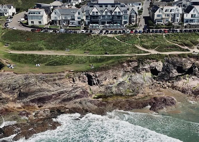 Polzeath Beach House, a 4-star accommodation rated 8.6/10 on Booking.com, features a restaurant and bar, offering a Mediterranean-style menu with a large terrace overlooking the beach. The hotel provides easy access to Polzeath Beach, a well-known safe surfing spot, and is located on the South West Coastal Path, popular with walkers.