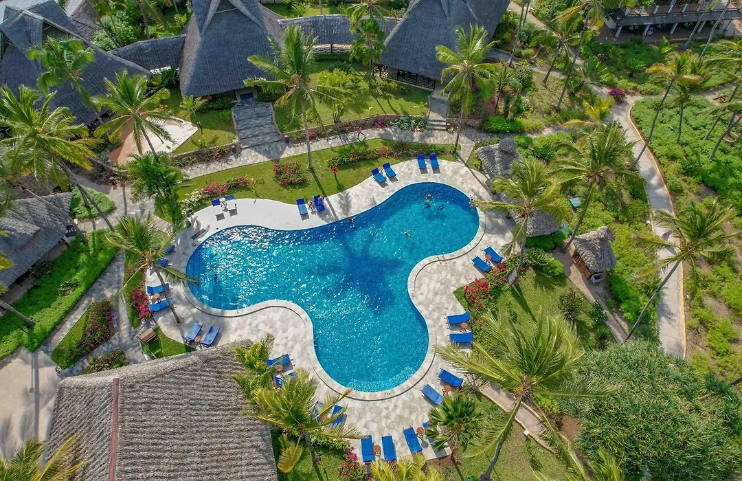 Leisure activities include snorkeling in pristine coral gardens, kite surfing, and diving from the resort's PADI-certified center. Guests can also partake in beach walks and visit the nearby Jozani Forest to see rare wildlife. The Frangipani Spa offers massages and treatments for relaxation.
