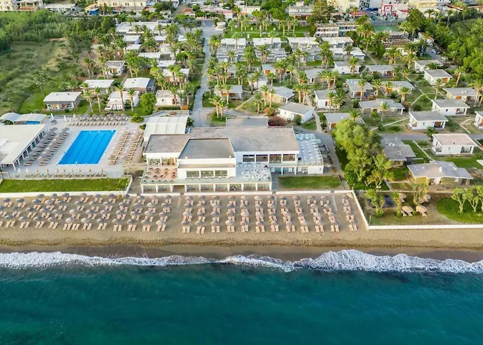 Civitel Creta Beach, a 4-star Amoudara (Heraklion) hotel rated 8.7/10 on Booking.com, features elegant bungalows and rooms set in palm-tree gardens by the sea. Amenities include a buffet restaurant emphasizing the Mediterranean diet and a vibrant lounge bar with cocktails and cold beers.