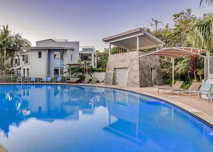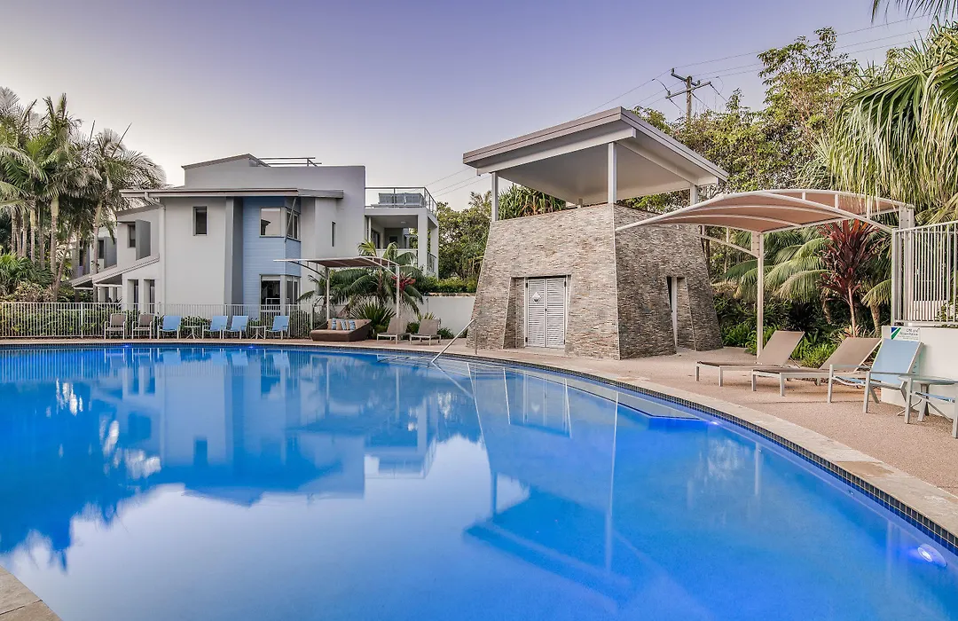 The resort features a heated main pool, children's pool, and a plunge pool for relaxation. Guests can enjoy local activities like surfing lessons and visits to Aqua Park Coolum. Additionally, nearby attractions include Eumundi Markets and a variety of nature walks.