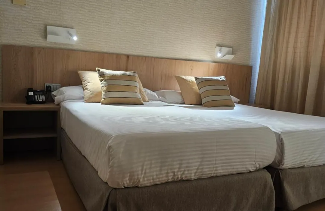 Daniya Alicante features air-conditioned rooms equipped with flat-screen TVs, minibars, safes, and complimentary Wi-Fi. Different room types include family rooms up to 30m² and standard double rooms offering various bedding configurations, catering to diverse needs.