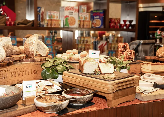 Dining options include Gastro Kitchen with an international breakfast buffet and poolside dining at Areia Pool & Beach Club. The MAINE Oyster Bar & Grill serves barbecue specialties and seafood dishes, providing various culinary choices for guests.
