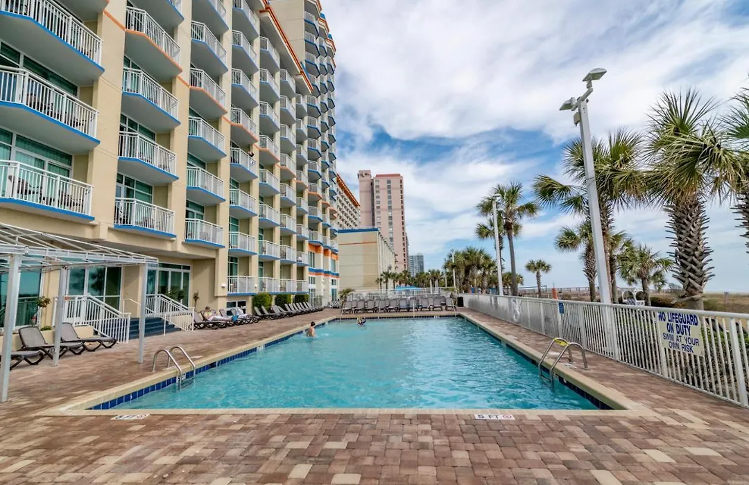 Dunes Village, a 3-star Myrtle Beach hotel with an 8.3/10 Booking.com rating, offers an extensive array of amenities including the largest indoor waterpark in the area and multiple dining options. The hotel features oceanfront accommodations, making it suitable for families seeking a vibrant beach vacation.