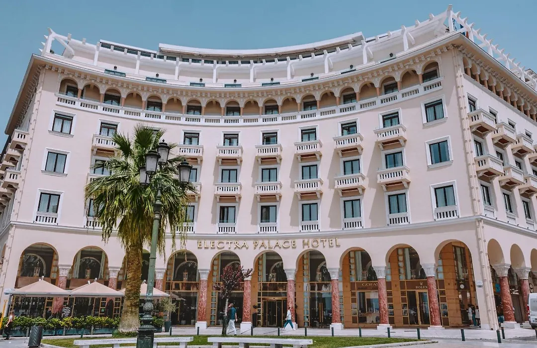 Electra Palace Thessaloniki, a 5-star hotel with a 9.2/10 rating on Booking.com, features luxurious accommodations and a rooftop pool. Its premium amenities include an exclusive lobby, a wellness center, and modern design elements, making it suitable for both leisure and business travelers.