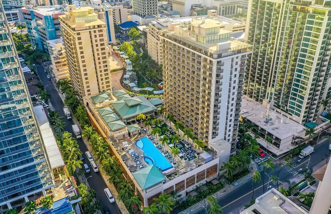 The hotel is located near several attractions including the Waikiki Aquarium, International Market Place, and the historic Pearl Harbor site. Transportation options include the Kona Street bus station and Honolulu Cruise Ship Port, both within walking distance.
