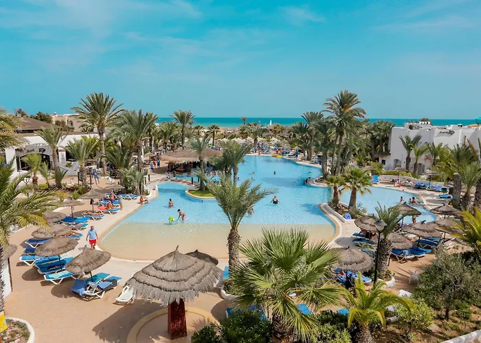 Fiesta Beach Djerba is a deluxe all-inclusive resort designed in the style of a Djerbien village. This 4-star Mezraia hotel features a central swimming pool, a wellness center, and diverse entertainment programs for families. Free Wi-Fi is available throughout the property, along with facilities like tennis courts and a variety of dining options.