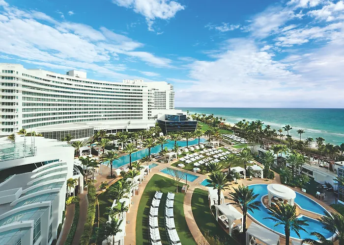 Fontainebleau Miami Beach, a 5-star luxury hotel, features world-class amenities, distinct dining options, and a vibrant nightlife scene. The property includes a renowned spa, expansive pools, and an adults-only day club, catering primarily to those seeking a stylish and energetic stay.