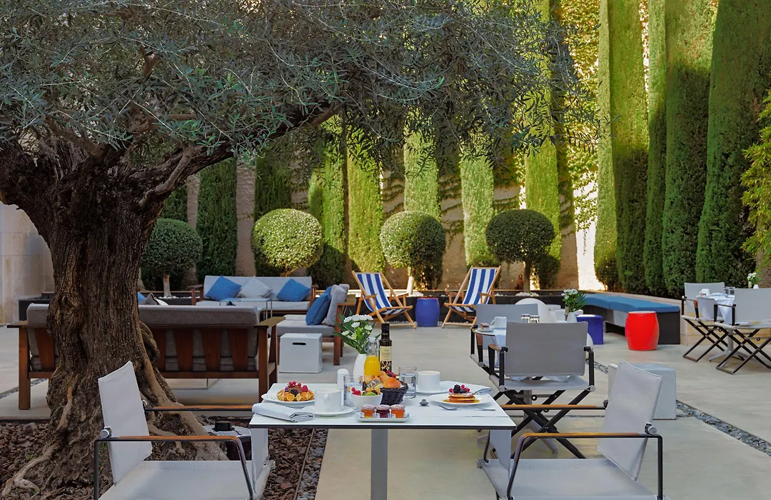 H10 Art Gallery 4* Sup offers a variety of room types including Deluxe Double Rooms with Terrace and Junior Suites. Each room includes a flat-screen TV, minibar, and air conditioning. The hotel features an open-plan space for events, accommodating up to 80 guests.