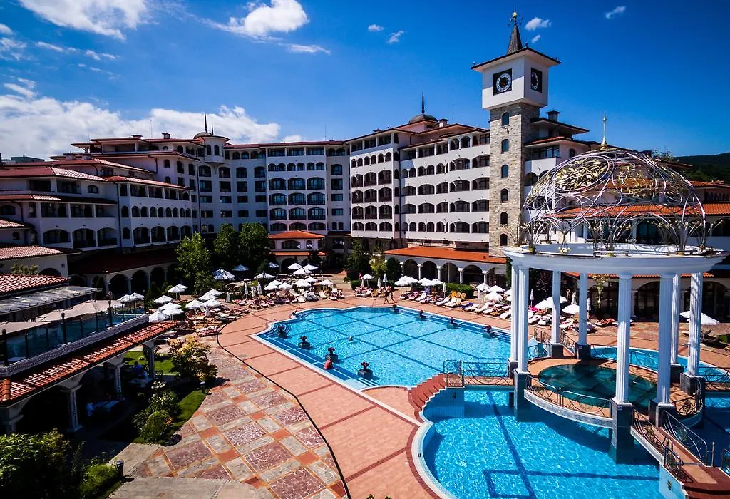 Helena Sands, a 5-star Sunny Beach hotel rated 9.2/10 on Booking.com, offers a range of amenities including outdoor and indoor pools, a spa, and access to a private beach. The hotel features several on-site dining options and a kids' club for family-friendly entertainment.