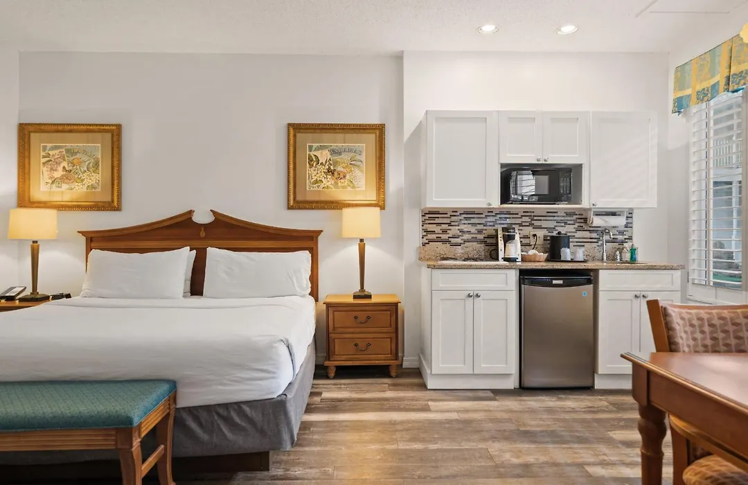 Rooms at Holiday Inn & Suites Clearwater Beach S-Harbourside include standard rooms with two queen beds, premium rooms with living areas, and one-bedroom suites equipped with full kitchens. All accommodations come with a flat-screen TV, free WiFi, air conditioning, and amenities like coffee makers and mini-refrigerators.