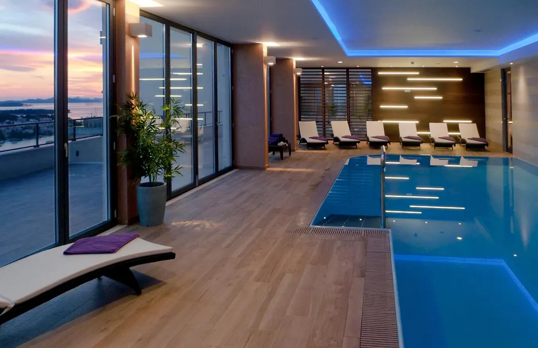 Hotel Adria, a 4-star Dubrovnik hotel with a rating of 8.7/10 on Booking.com, features modern and air-conditioned rooms and a top-floor restaurant overlooking Gruz Bay. The hotel offers outdoor and indoor swimming pools and extensive spa facilities, catering to both leisure and business guests.