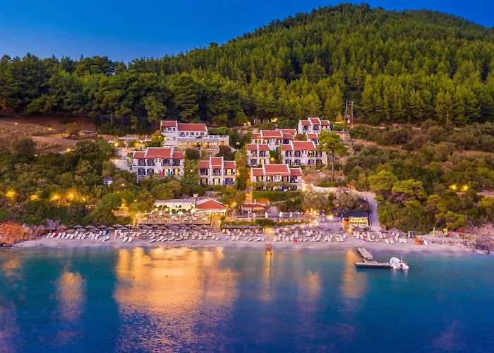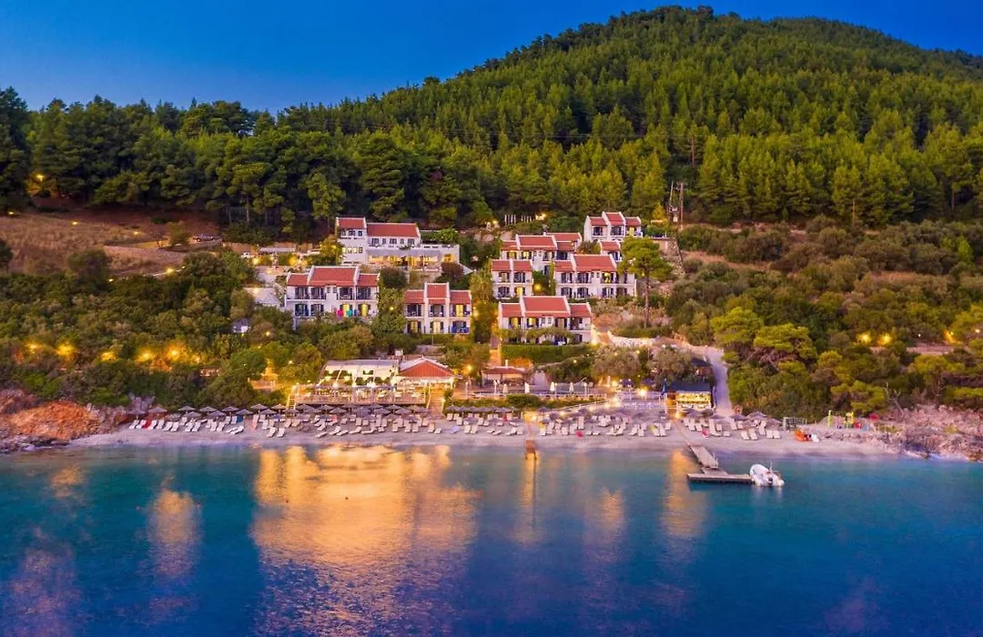 Recreational facilities include a sea water swimming pool and a dedicated area on the private pebble beach, with complimentary sunbeds and umbrellas for guests. The hotel also offers easy access for boat visitors, allowing exploration of nearby islands including Skiathos and Alonissos. A diving center is available for those wishing to explore the marine biodiversity.