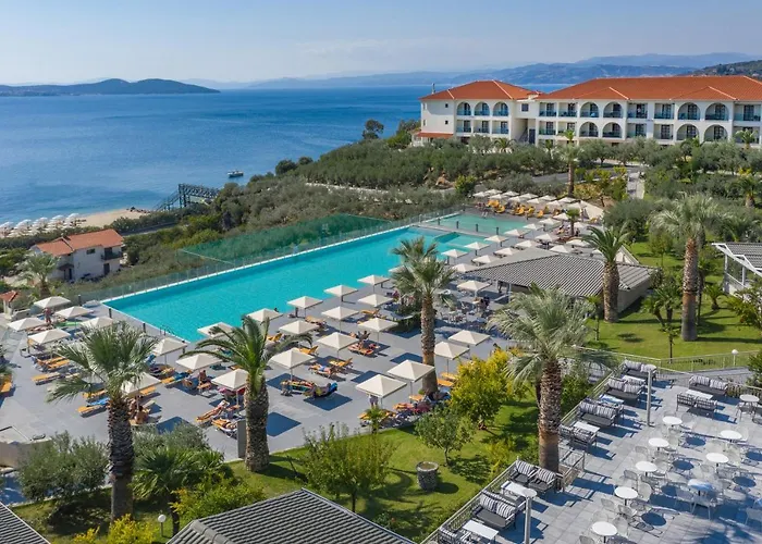 Akrathos Beach Hotel features 311 rooms equipped with modern amenities, a buffet restaurant, and a diverse set of recreational facilities. The 4-star property offers a private beach area and engaging entertainment programs such as themed nights and poolside events.