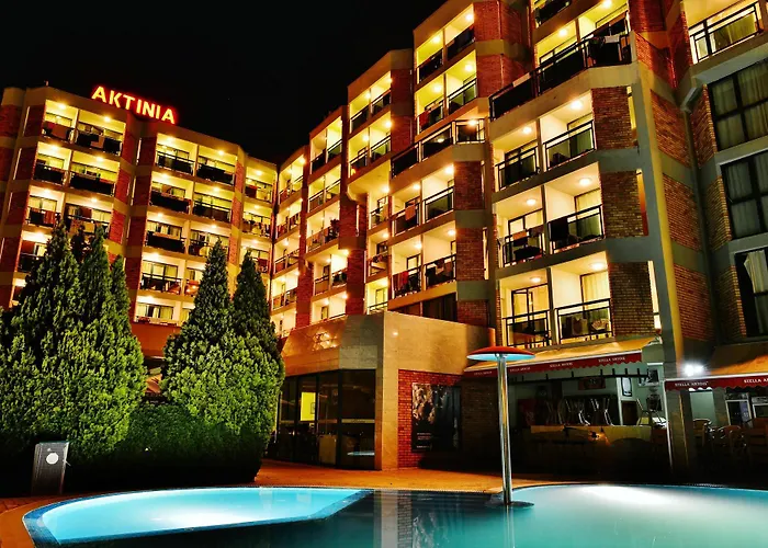 Hotel Aktinia, a 3-star beachfront hotel in Sunny Beach, offers a swimming pool, a Turkish bath, and various amenities for comfort and convenience, including free WiFi and a 24-hour reception. It features 142 rooms with a mix of single and double accommodations.