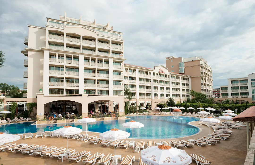 Hotel Alba, a 4-star Sunny Beach hotel rated 7.8/10 on Booking.com, features two outdoor swimming pools and a mini aqua park. This family-friendly property provides air-conditioned rooms with private balconies and a variety of dining options including a restaurant and lobby bar.