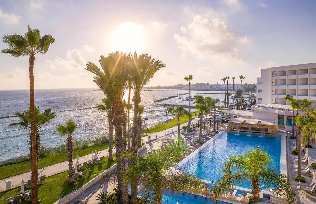 Alexander The Great Beach Hotel, a 4-star Paphos hotel, offers a seafront location on a sandy Blue Flag beach, just a short stroll from Paphos' picturesque Old Harbour and medieval castle. Guests can enjoy a variety of dining options, luxurious amenities, and family-friendly services.