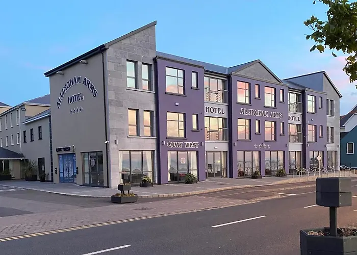 Dining options at the Allingham Arms Hotel include Oceans Restaurant, which serves locally sourced dishes with views over Donegal Bay. The Quay West Bar offers a menu of snacks and drinks to complement the evening entertainment. Sunday lunch options feature a variety of roast meats and vegetarian dishes.
