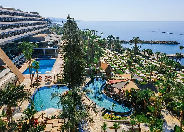 Amathus Beach Hotel Limassol, a 5-star luxury resort rated 9.4/10 on Booking.com, features extensive wellness facilities and gourmet dining options. This family-friendly hotel offers direct beach access, multiple swimming pools, and comprehensive services for both leisure and business travelers.