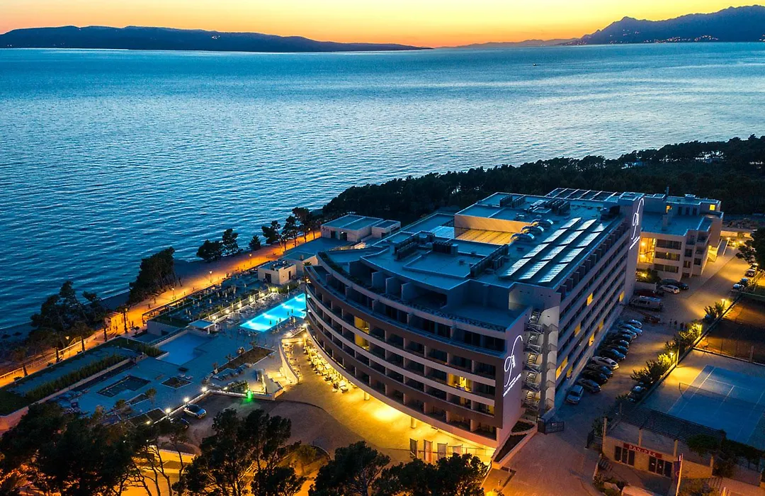 Aminess Laurel Khalani Hotel offers a prime seafront location with luxurious amenities, including a spa center, multiple pools, and gourmet dining options. This 5-star Makarska hotel is rated 9.1/10 on Booking.com, perfect for families and those seeking relaxation.