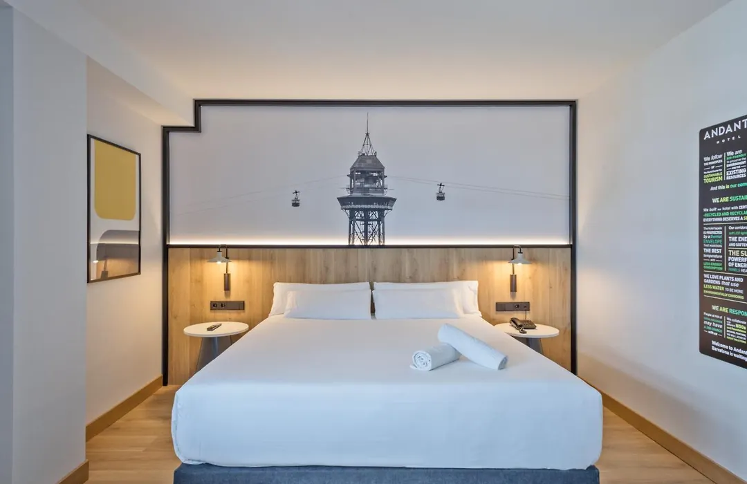 Andante Hotel presents a 3-star experience with 4-star facilities in the Raval Quarter of Barcelona, just minutes from Les Rambles. The hotel features an infinity plunge pool on the rooftop, a gym, and a 24-hour self-service vending area, catering to various guest needs.