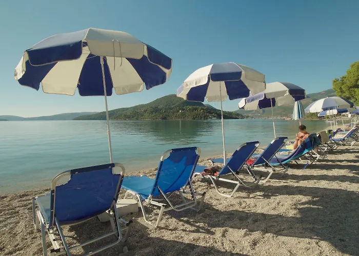Avra Beach Hotel, a 3-star accommodation rated 8.7/10 on Booking.com, offers a beachfront location and sea views in Nydri (Lefkada). Guests can enjoy air-conditioned rooms, a lush garden, and a taverna serving fresh seafood and Greek specialties.