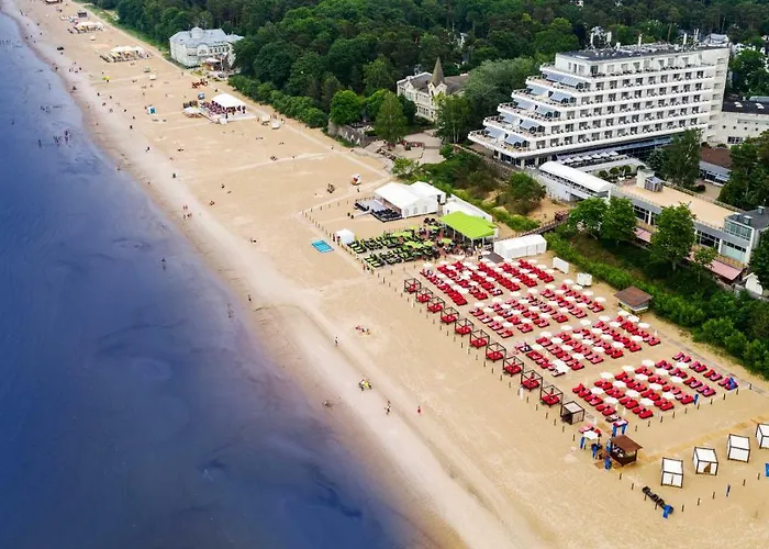 Baltic Beach Hotel & Spa offers a luxurious experience with its 5-star facilities, including an extensive spa with over 400 treatments and direct beach access. This Jurmala hotel features a range of rooms and villas with contemporary designs, ensuring guests have a comfortable stay with stunning sea views.