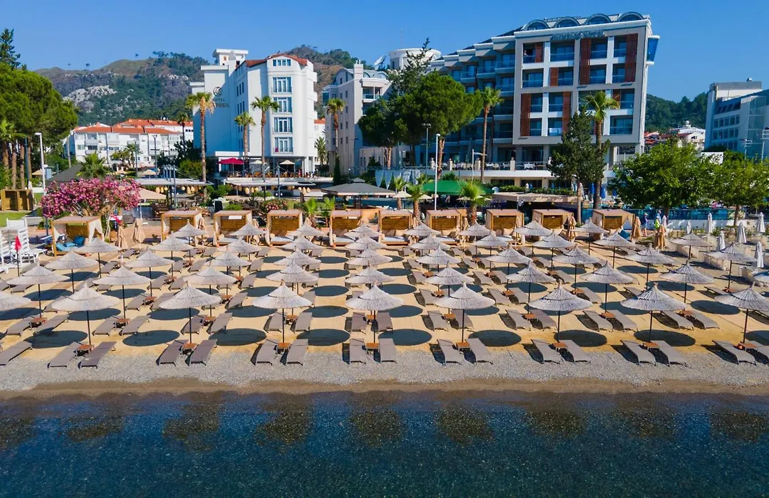 Hotel Caprea, a 3-star Marmaris hotel with an 8.4/10 rating on Booking.com, features a seasonal outdoor swimming pool and free private parking. The property also includes a garden, shared lounge, and access to a hot tub and nightclub.
