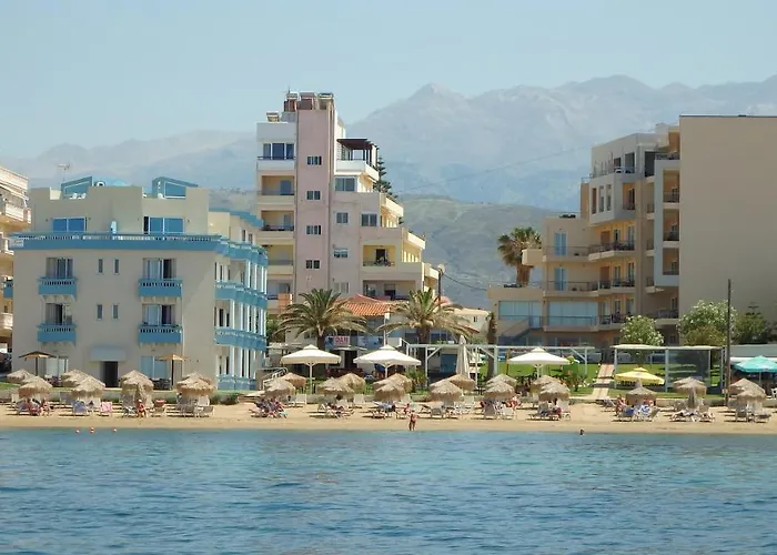 Hotel Christina offers beachfront accommodations in Chania (Crete) with a variety of amenities, including a heated outdoor pool, fitness area, and a snack bar. This 4-star hotel holds a 9.1/10 rating on Booking.com, featuring well-equipped studios and apartments for self-catering.