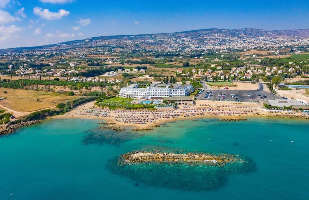 On-site dining includes Corallia Restaurant serving breakfast, lunch, and dinner, as well as Paradis Pool Bar providing refreshing drinks daily. Nearby dining options can be found in Paphos, which is accessible by local bus.