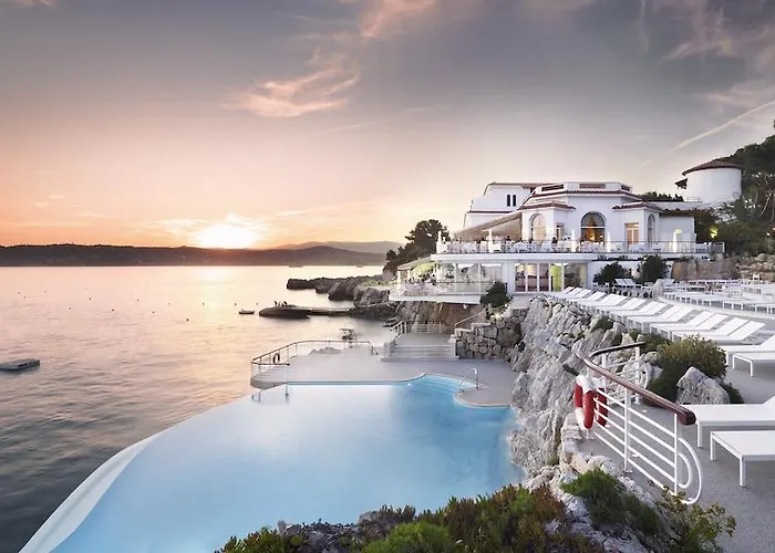 Hotel Du Cap Eden Roc is a prestigious 5-star hotel featuring private villas and extensive parkland, along with a renowned seawater pool. It is recognized for exceptional cuisine crafted by Michelin-starred chefs and a historic luxury ambience.