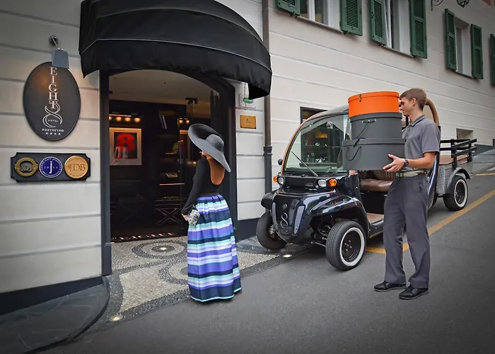 Eight Hotel Portofino (5-star, 8.8/10 on Booking.com) offers an elegant stay surrounded by the scenic Portofino hills. This pet-friendly accommodation features a private garden with sun loungers, a hot tub, and an outdoor setting for dining. Guests can indulge in culinary experiences and enjoy a relaxing atmosphere.