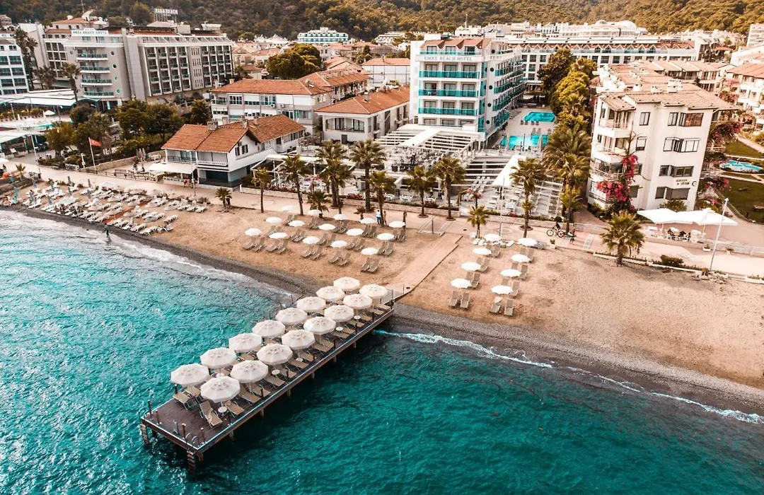 The hotel is situated near attractions such as Marmaris Grand Bazaar, AquaDream Water Park, and multiple dining options. Nearby transport includes several bus stations for easy access to the surrounding area, enhancing accessibility for guests.