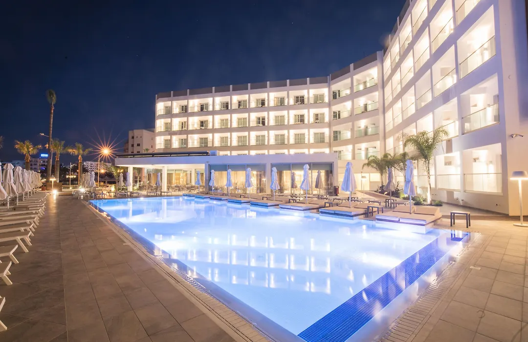 Evalena Beach Hotel, a 4-star resort with an 8.6/10 rating on Booking.com, offers 74 apartments overlooking Fig Tree Beach and features a wellness centre, outdoor pool, and on-site dining options. This family-run Protaras hotel prioritizes sustainability within a friendly environment.