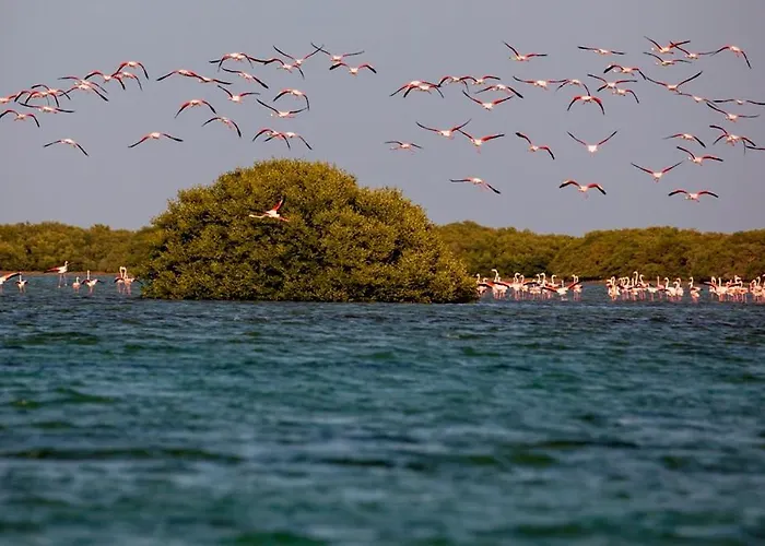 Flamingo Beach Hotel, a 3-star Umm al-Quwain hotel with an 8.6/10 rating on Booking.com, features water sports activities and a private beach area. Guests can enjoy an outdoor pool and on-site dining options.