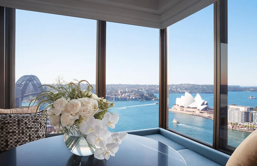 Guest rooms feature rich silk fabrics and mahogany wood details, alongside spacious marble bathrooms. The Deluxe City Room provides striking views of Sydney's skyline, while the Premier Partial Harbour Room mixes city and water views through floor-to-ceiling windows. Suites, including the Two-Bedroom Presidential Suite, offer expansive space with panoramic views of Sydney Harbour.