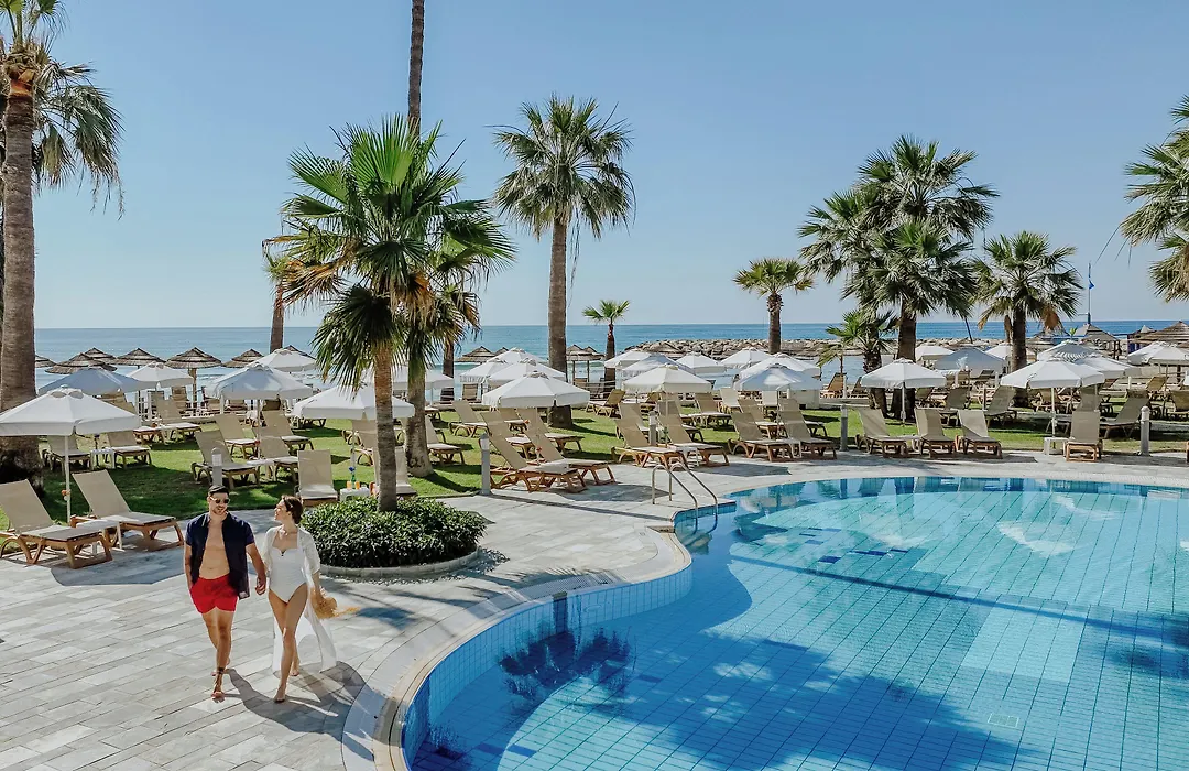The Golden Bay Beach Hotel offers a blend of luxury accommodations and extensive amenities within landscaped gardens. This 5-star Larnaca hotel features an impressive range of dining establishments, a rejuvenating spa, and recreational activities, all complemented by exceptional hospitality.