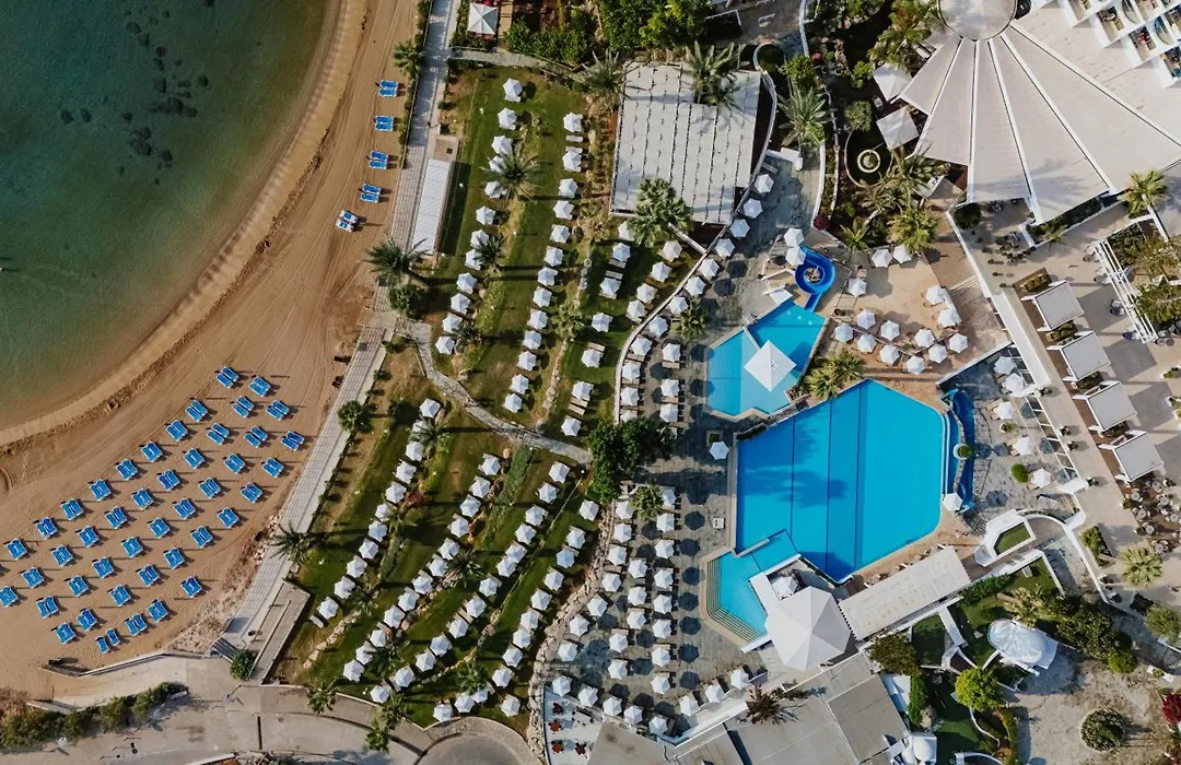 Golden Coast Beach Hotel provides a beachfront experience with a variety of amenities, making it suitable for families, couples, and leisure travelers. This 4-star Protaras hotel features spacious rooms, multiple dining options, extensive leisure facilities, and excellent conference spaces. Rated 8.8/10 on Booking.com, it ensures a memorable stay.