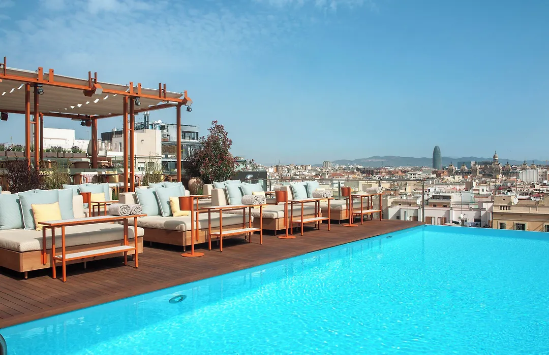 Grand Hotel Central, Small Luxury Hotels, is a 5-star property with a contemporary design and historic roots, offering an infinity pool and spa in the heart of the Gothic Quarter. Guests have access to a rooftop terrace with stunning views of Barcelona and a high-tech gym.