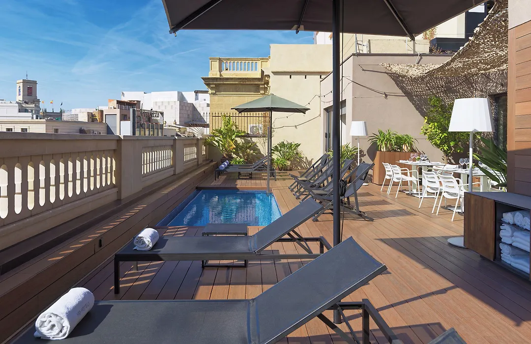 H10 Urquinaona Plaza (Adults Only) is a 4-star hotel featuring modern interior design within a late 19th-century building. Guests can enjoy a rooftop terrace with a plunge pool and a restaurant offering Mediterranean cuisine, all set in an elegant atmosphere. The hotel has a booking.com rating of 8.8/10.