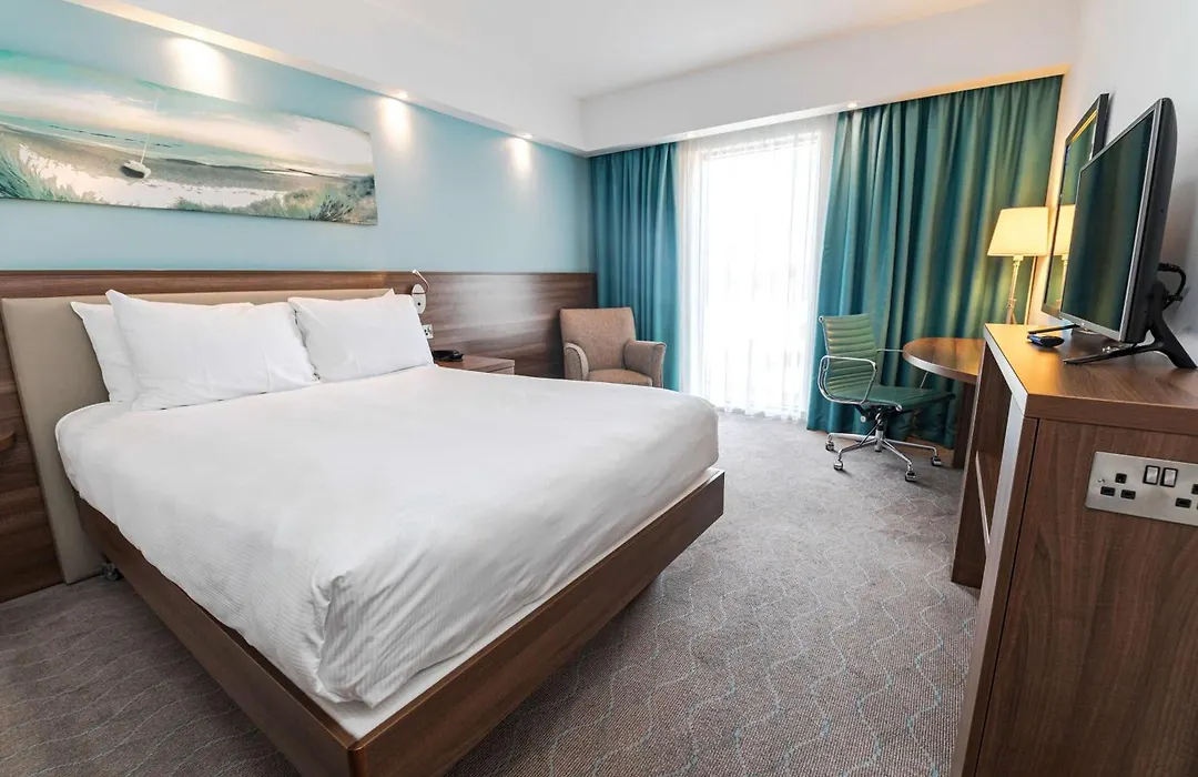 Guestrooms at Hampton By Hilton Bournemouth feature air conditioning, LCD TVs, and unlimited tea/coffee making facilities. All rooms include amenities like laptop-compatible safes and ergonomic desks, some offering city or sea views. Complimentary toiletries are provided in private bathrooms.