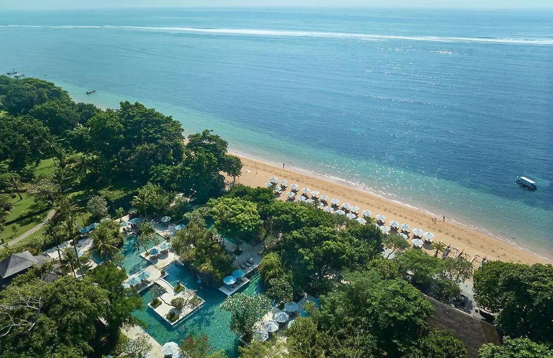 Hyatt Regency Bali, a 5-star beachfront resort, features extensive wellness facilities and three outdoor pools. Guests can enjoy modern amenities in well-appointed rooms and several dining options.
