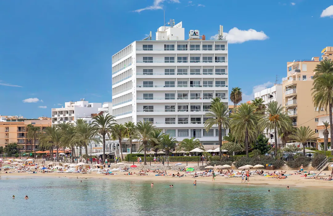 Hotel Ibiza Playa features 157 rooms, including sea-facing options with private balconies overlooking the Mediterranean and Formentera Island. Rooms are equipped with air conditioning and include amenities such as free WiFi and flat-screen TVs.