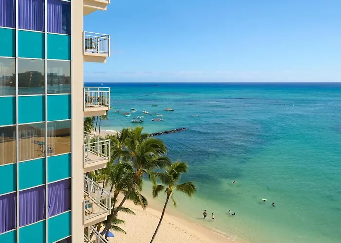 Kaimana Beach Hotel, a 3-star Honolulu hotel with an 8.3/10 Booking.com rating, offers beach access and a unique beachfront location at the edge of Waikīkī. Enjoy amenities like an oceanfront restaurant, private balconies, and five reimagined suites with oversized balconies ideal for sunset-watching.