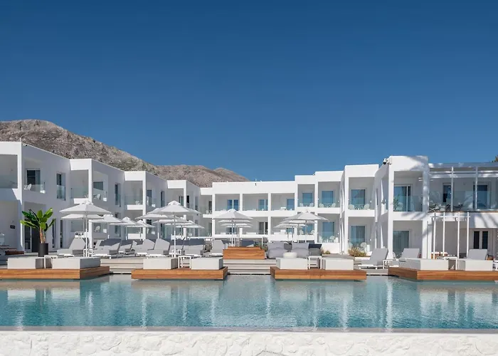 Kantouni Beach Boutique Hotel, a 4-star property rated 9.9/10 on Booking.com, offers luxurious rooms and suites with stunning sea views. Guests can enjoy a poolside bar, a restaurant serving gourmet dishes, and a beachfront location ideal for seaside holidays.